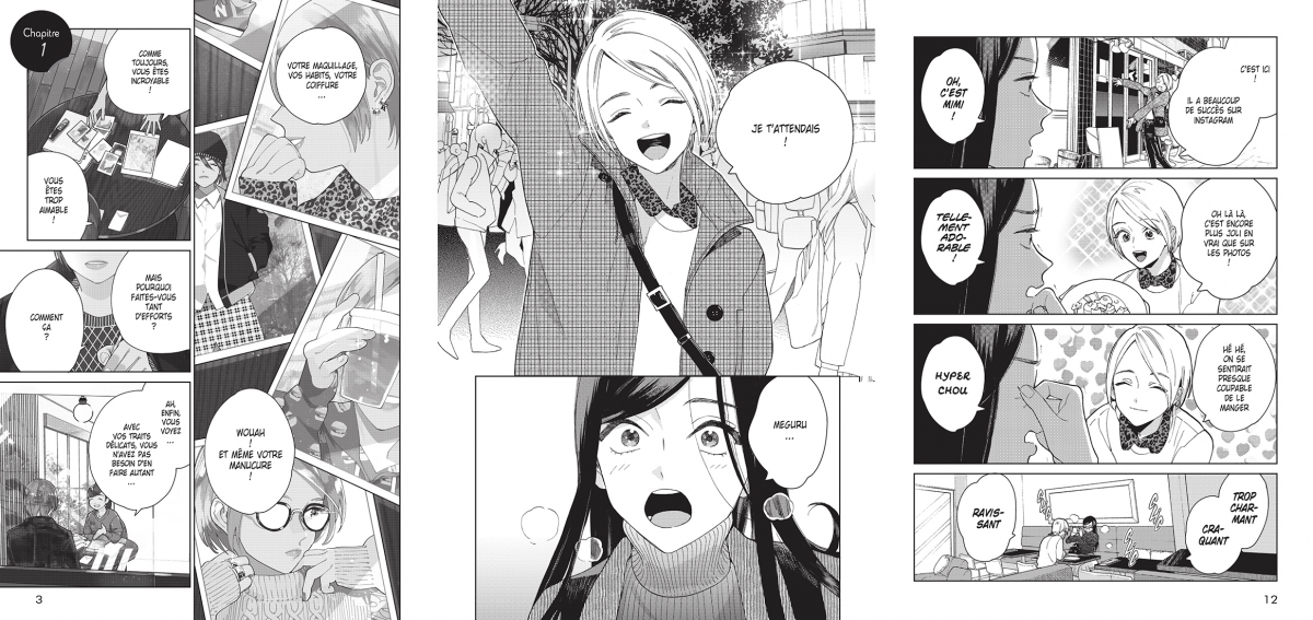 Voici une lecture toute douce, toute fraîche et un brin amusante. On y suit le quotidien personnel et professionnel de deux jeunes actifs : Wako et Meguru, l'une bosse dans une maison d'édition, l'autre est une star des réseaux sociaux. Tamekou nous offre un joli regard doux et pétillant sur le quotidien de ces deux jeunes adultes sur lesquels beaucoup de gens se méprennent. Avec son look loin des codes virils de la société, Meguru est souvent confondu avec une femme, on pense donc Wako dans une relation lesbienne. Quant à Meguru, quand on sait que c'est un homme, on le prend pour un homosexuel à cause du soin qu'il porte à sa personne. Ça en dit long sur nos préjugés. Sauf qu'au lieu de creuser la chose, l'autrice prend le parti pris de nous parler, sur un ton assez humoristique, de leur quotidien.