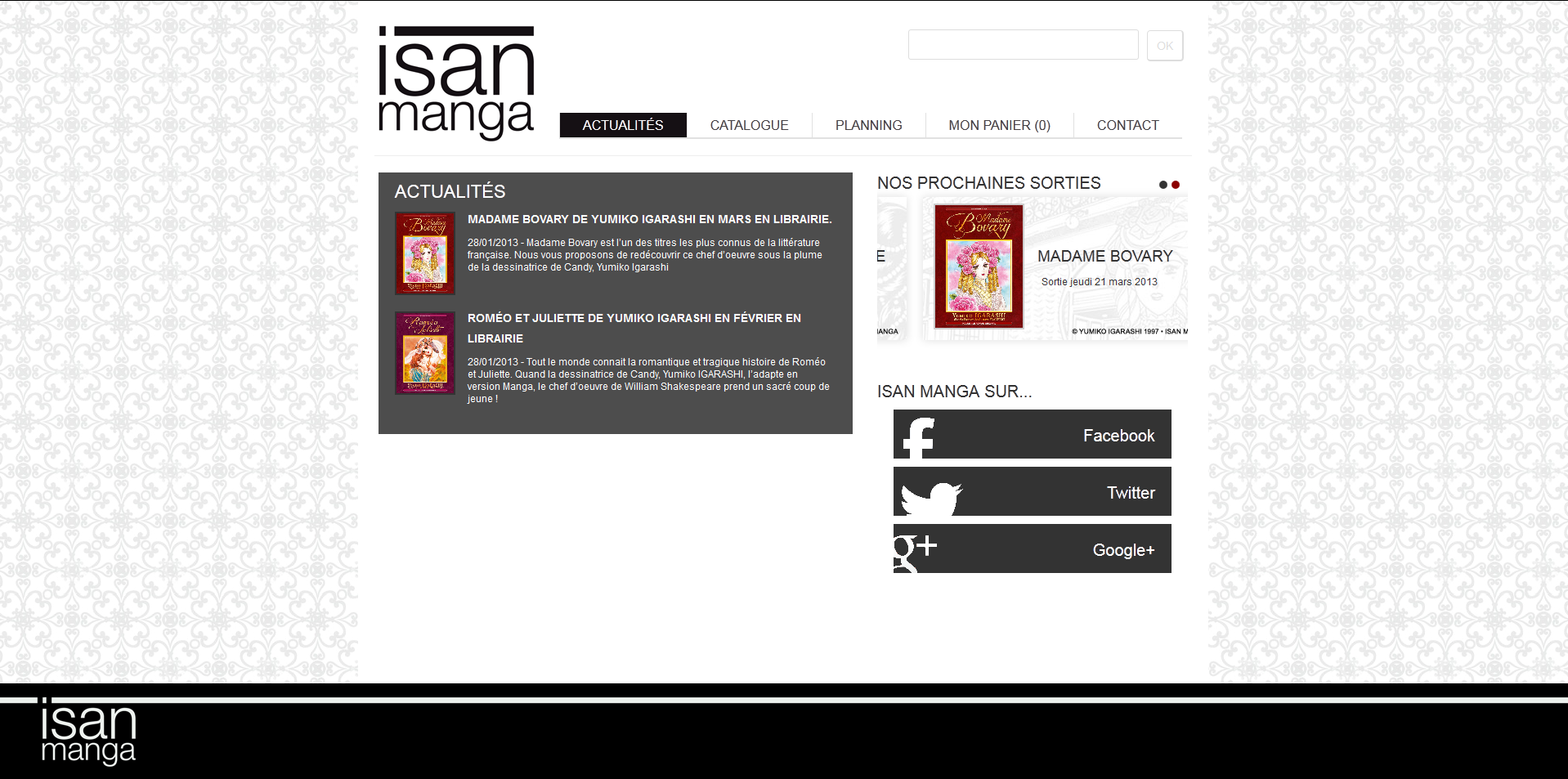 ISAN Manga, le nouvel éditeur de mangas qui proposera Roméo et Juliette dès le mois prochain (voir news) et Madame Bovary en mars (voir news) met à la disposition de ses futurs lecteurs, un site tout frais avec actualités, catalogue et d'autres rubriques à venir.
