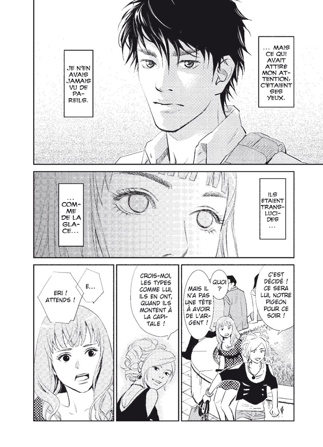 Dès les premières pages, nous sommes familiarisés avec l'une des nombreuses méthodes dont usent les Yakuzas pour extorquer de l'argent à leurs victimes. En l'occurence, la victime est le personnage principal de cette histoire : Yukito.