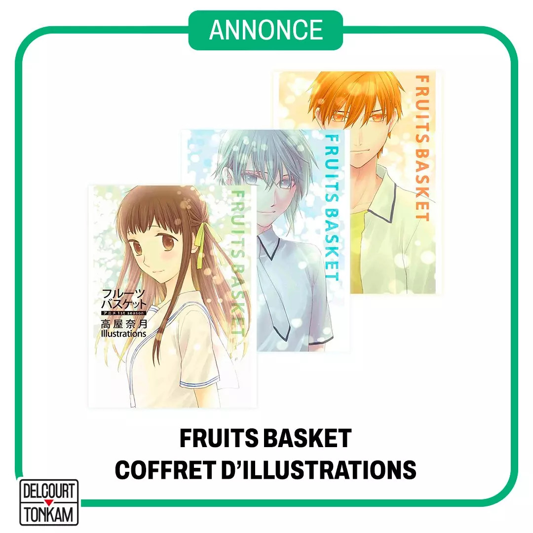 Après avoir ressorti la série originale de Natsuki TAKAYA dans une édition Perfect, Delcourt/Tonkam est heureux d'annoncer l'arrivée en France pour la toute première fois un coffret d'illustrations inédites de Fruits Basket. Ce coffret regroupera trois livrets exclusifs de l'anime. Chacun se concentrera sur une saison de ce dernier avec des visuels en couleur, des scènes phares, des résumés d'épisodes et bien plus encore. Sa sortie est prévue pour le mois de juillet.